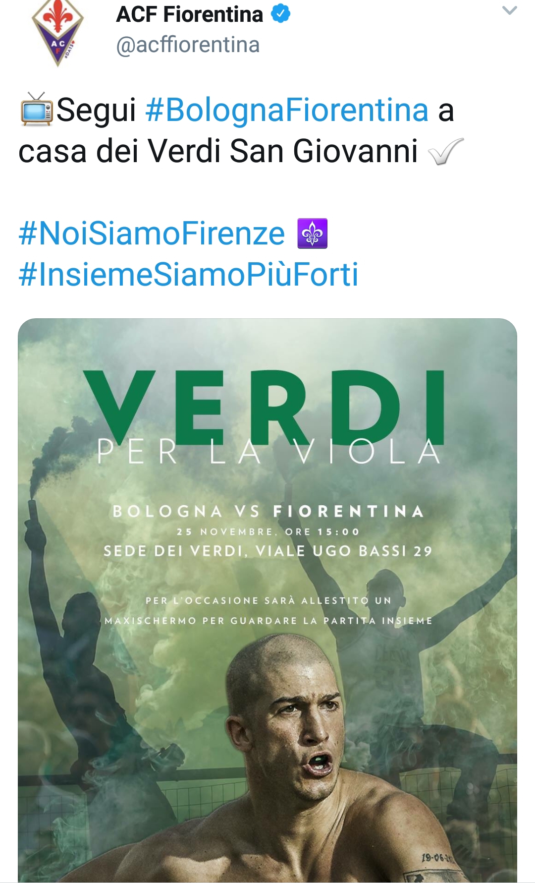 In occasione della partita tra Bologna e Fiorentina, che la squadra viola giocherà con la maglia verde proprio in onore dei Verdi di San Giovanni, nella sede dei Verdi ci sarà il maxischermo e sarà proiettata la partita della squadra viola.