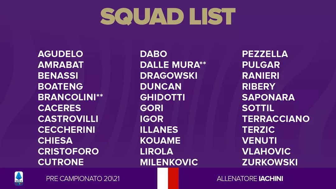 Ecco la lista dei giocatori convocati dalla società viola per la preparazione prima della ripartenza dal prossimo campionato: