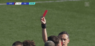 Al 64′ rosso per Odriozola. Sul cross di Gaston Pereiro, Odriozola viene spinto da Joao Pedro ma tocca con il braccio, per Aureliano è calcio di rigore e rosso diretto per il terzino spagnolo. Dal dischetto Terracciano para e ipnotizza Joao Pedro, con la Fiorentina ancora in partita LEGGI ANCHE, AL 47′ IL CAGLIARI PASSA … Leggi tutto Al 67′ rosso per Odriozola e calcio di rigore per il Cagliari. Terracciano para il rigore a Joao Pedro