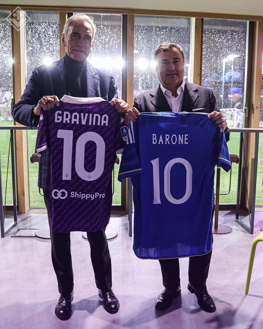 In occasione della partita della Nazionale femminile allo stadio del Viola Park, il presidente della Federazione Italiana Gabriele Gravina e il direttore generale della Fiorentina Joe Barone si sono scambiati le rispettive maglie di rappresentanza con grande soddisfazione dopo una partita che è storica per la storia viola e del suo centro sportivo. Queste le foto postate dai profili social ACF