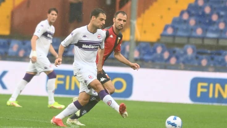 All’88’ Genoa-Fiorentina 0-2, Bonaventura gol all’angolino su assist di tacco di Saponara