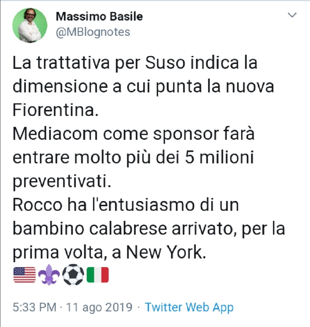 11 Agosto · 21:3411 Agosto · 20:41 di Redazione Ecco il post del giornalista Massimo Basile su Twitter:
