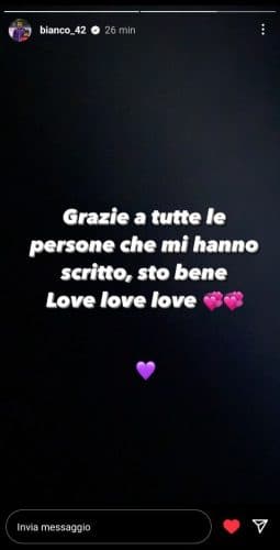 Pochi minuti fa attraverso il proprio profilo Instagram ha voluto tranquillizzare i tifosi e tutti coloro che gli sono stati vicino. Di seguito il messaggio di Bianco: