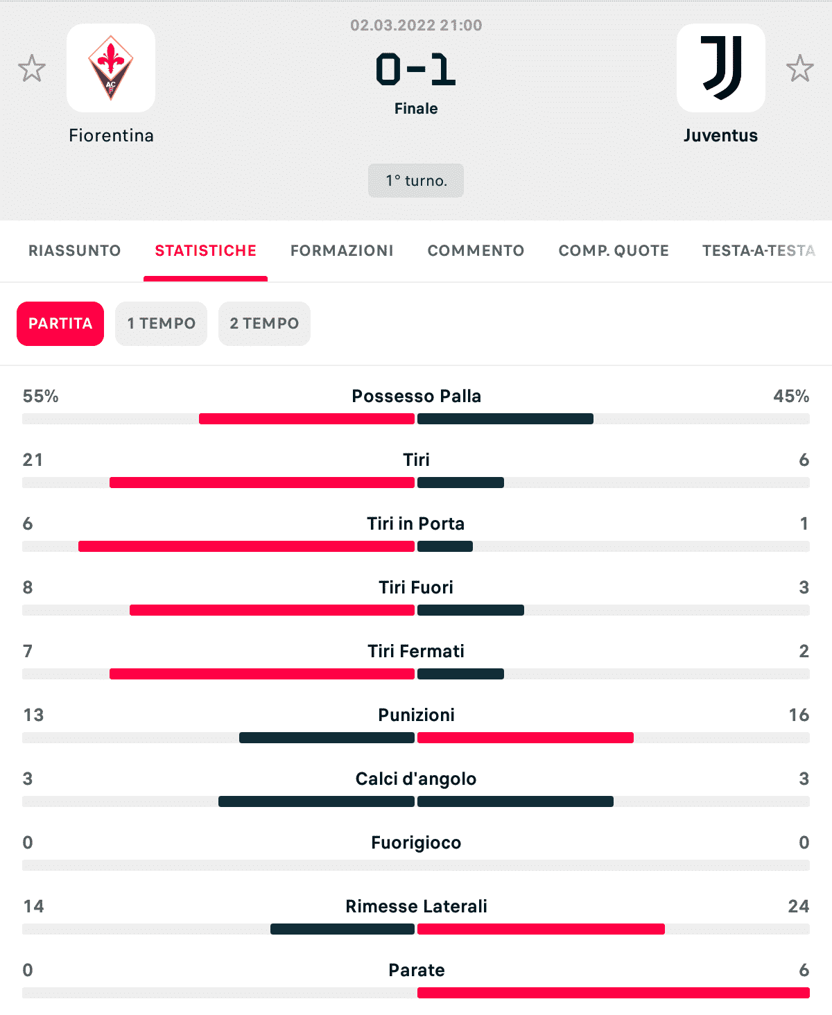 Rispetto alle parole di Birindelli però, oltre i numeri che raccontano tutta un’altra partita, ci sono le tre occasioni nette della Fiorentina che ha avuto per fare gol. Da Bonaventura fino alle due di Ikonè
