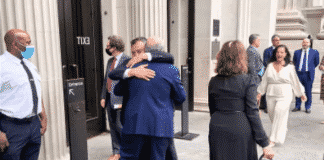 Commisso e Barone all’inaugurazione della sede della Serie A a New York, grande abbraccio tra i due