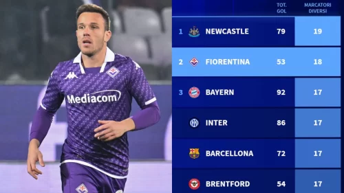 Con il gol di Arthur di ieri sera contro il Monza, la Fiorentina di Vincenzo Italiano stacca l’Inter e si porta in prima posizione per marcatori diversi nel campionato italiano. Infatti, sono ben 18 i giocatori viola andati a segno in questa stagione di Serie A, con l’Inter ferma a quota 17. Tuttavia, รจ necessario … Leggi tutto Con il gol di Arthur, la Fiorentina vanta 18 marcatori in campionato. In Europa solo il Newcastle ha fatto meglio