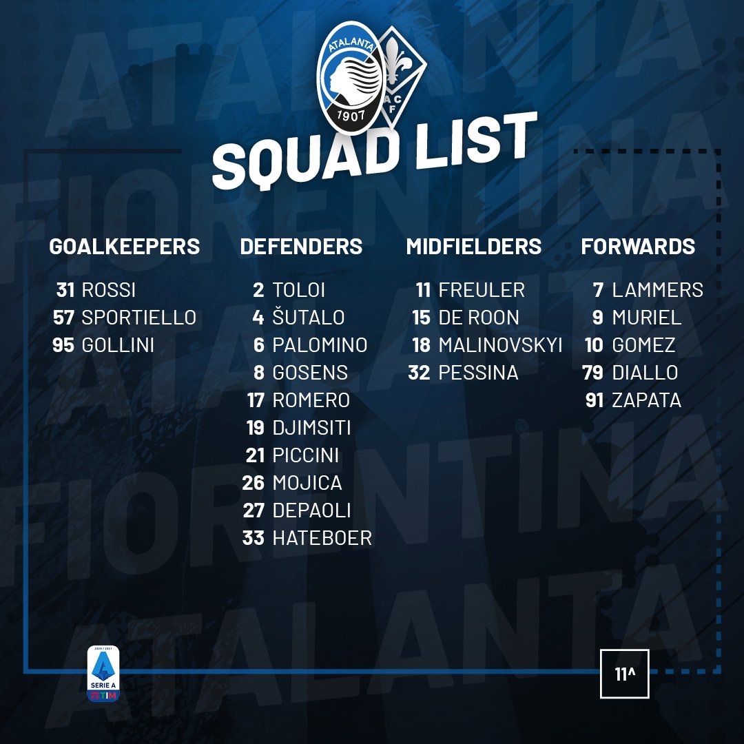 Domani alle 15.00 la Fiorentina affronterà l’Atalanta a Bergamo. Ecco la lista dei convocati di Gian Piero Gasperini, tecnico nerazzurro. Out Ilicic, l’ex viola sembra essere fuori perchè colpito da un’influenza.