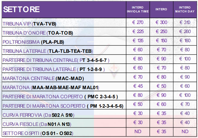 Da oggi in vendita i biglietti per Fiorentina-Roma: info e prezzi