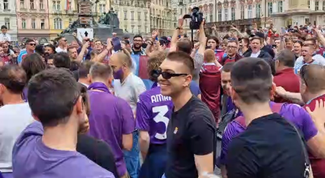 Da Praga, i tifosi del West Ham vedono i tifosi della Fiorentina in piazza e cantano cosi davanti a loro