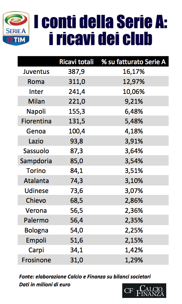 Per far capire meglio il concetto, vediamo le entrate e il fatturato della stagione 2015/2016