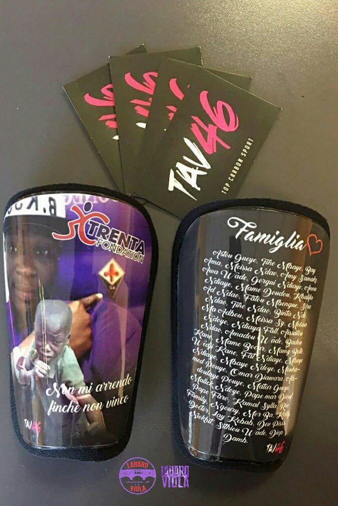 Molto particolari i parastinchi di Babacar che ha dedicato i parastinchi alla famiglia e alle persone in difficoltà, con la frase “Non mi arrendo finché non vinco” con la sua mano che indica lo scudetto della Fiorentina.