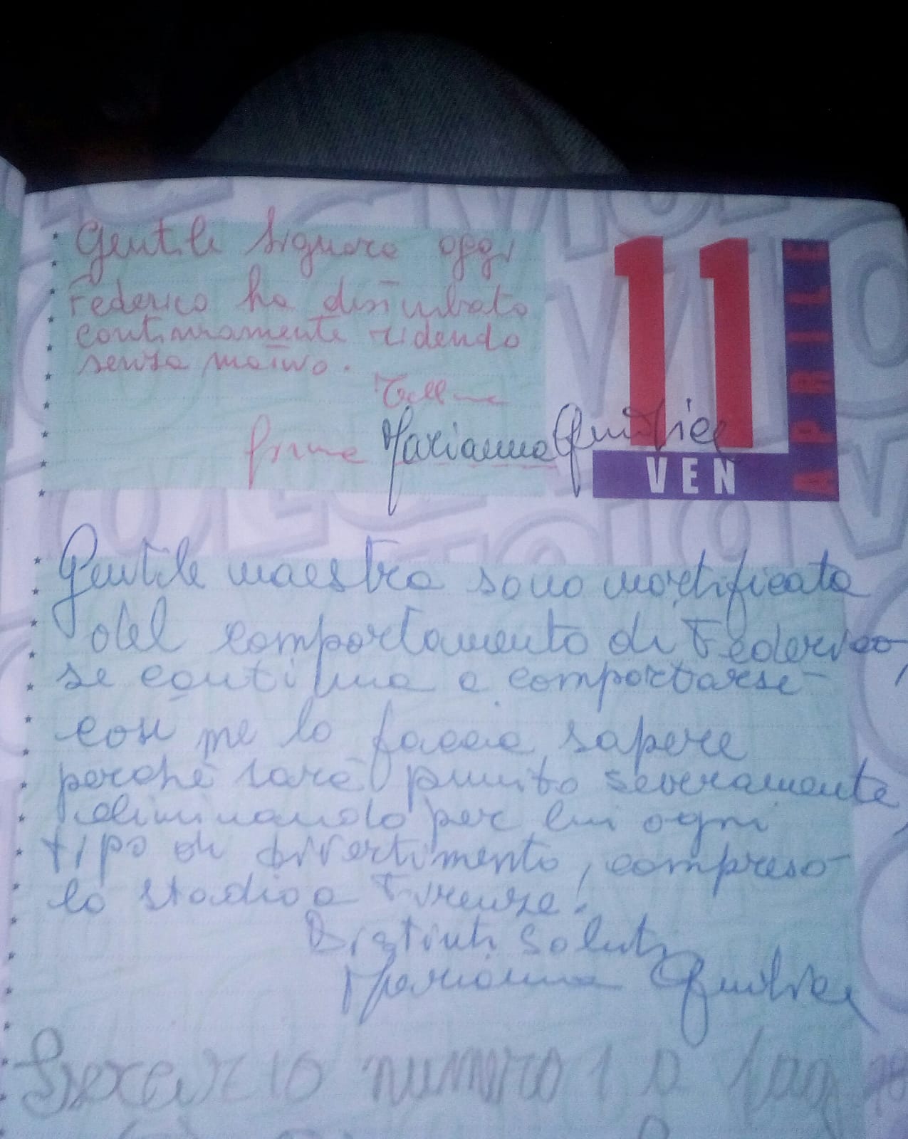 La nota della prof. sul diario del presidente del club
