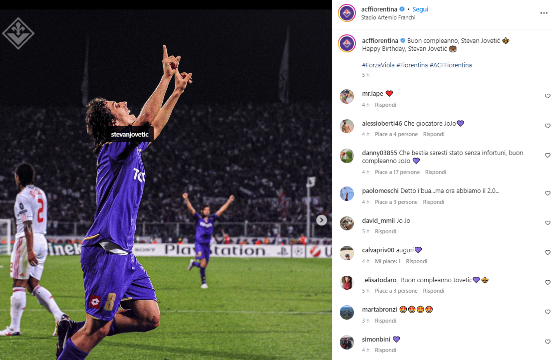 Fece innamorare Firenze con le sue giocate. Auguri Jovetic, e la Fiorentina lo festeggia sui social