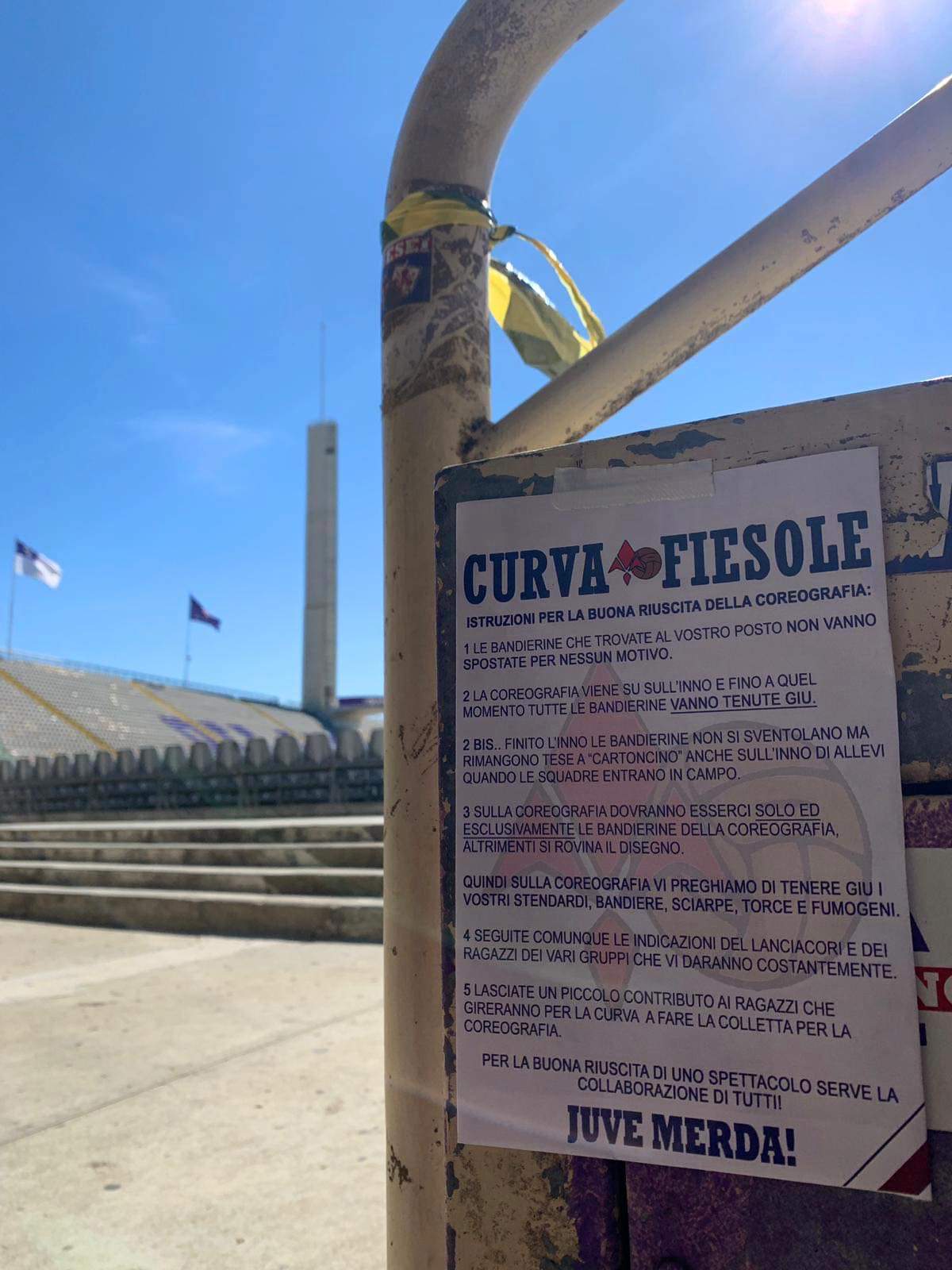 Domani in occasione di Fiorentina-Juventus ci sarà una grande coreografia allo stadio Franchi, sia in Curva Fiesole che in tribuna maratona. Ecco le indicazioni dagli spalti