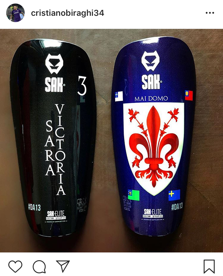 Il difensore della Fiorentina, Cristiano Biraghi, ha postato su Instagram i suoi nuovi parastinchi. Ecco la foto: