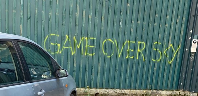 (FOTO) E intanto fuori dal Franchi appare una scritta contro Sky: “Game Over”