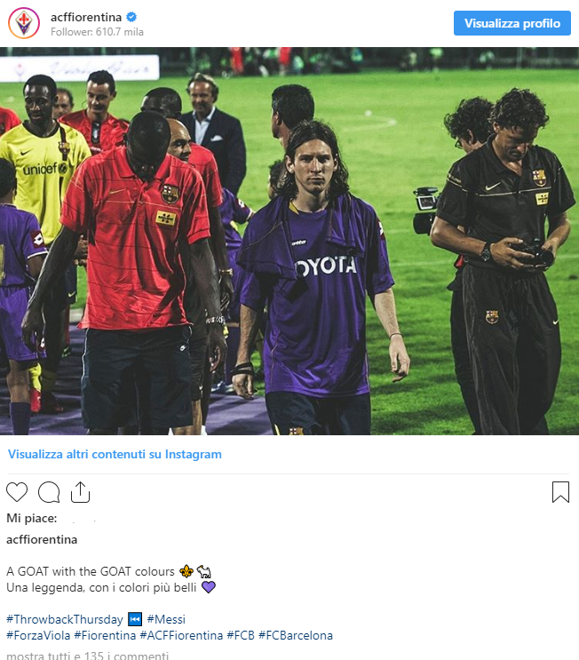 Al Franchi ci ha giocato una volta sola, quando da giovanissimo giocò un’amichevole con il suo Barcellona contro la Fiorentina. A fine partita, Leo Messi scambiò la sua maglietta con quella di un giocatore viola, e la indossò per uscire dal campo. I profili social della Fiorentina ricordano come il miglior giocatore di tutti i tempi abbia indossato (seppur per pochi minuti) il colore più bello. E come gli dona quella maglia viola…