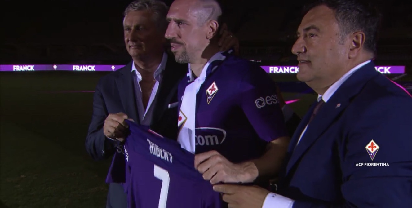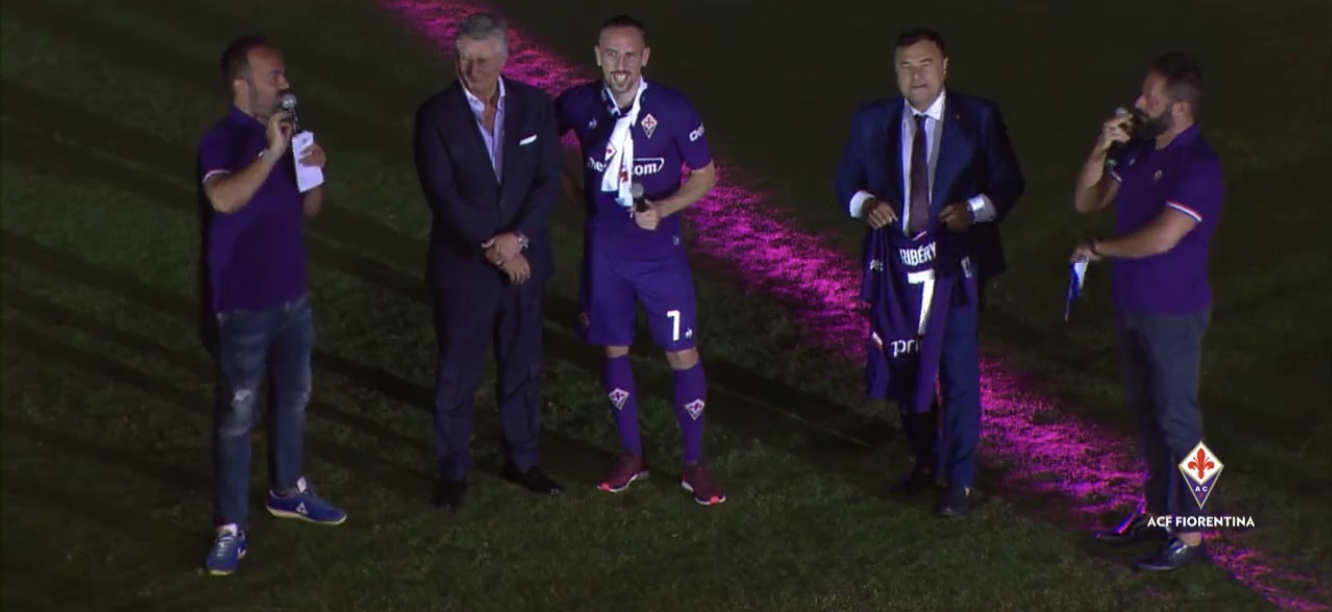 Ecco le foto della presentazione di Franck Ribery allo stadio Franchi. Fonti foto Stefano Borgi e Violachannel: