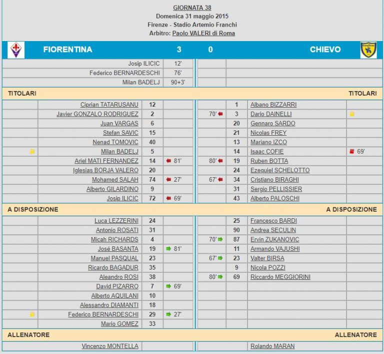 Era un Fiorentina-Chievo di fine stagione e Vincenzo Montella era prossimo a lasciare la panchina della Fiorentina. Questa fu l’ultima formazione schierata dal tecnico partenopeo. Da notare anche la panchina…