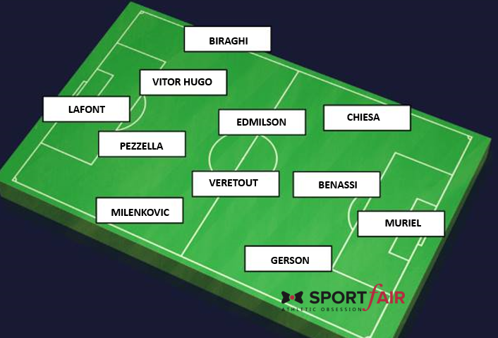 Fiorentina affidata a mister Vincenzo Montella dopo le dimissioni di Pioli a seguito dei disguidi con la società. Per il neo tecnico viola si tratta di un ritorno a Firenze ed è già pronto a dare la propria impronta sulla squadra. Il modulo più spesso adottato da Montella è il 4-2-3-1, che si adatterebbe bene agli uomini a sua disposizione. La difesa a 4 è già consolidata, in mediana potrebbe alternare Edmilson e Dabo al fianco di Veretout nel ruolo di regista. Muriel e Simeone si giocheranno il posto davanti, con l’opzione di giocare anche assieme con il colombiano che in quel caso partirebbe da rifinitore. Chiesa, Mirallas e Gerson si divideranno le corsie, mentre sulla trequarti sta facendo un buon campionato Benassi. Vediamo dunque in grafica come potrebbe giocare la Fiorentina con l’arrivo di Montella.