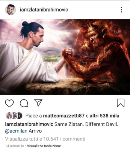 Di seguito riportiamo anche la foto apparsa sul profilo instagram del fuoriclasse svedese. Ecco il post: