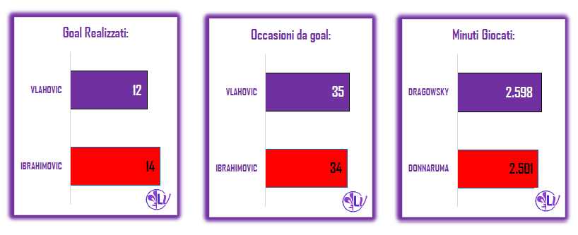 Le statistiche della Serie A evidenziano che dal punto di vista individuale è Ibrahimovic il giocatore più pericoloso del Milan con 34 occasioni da rete e 12 goal realizzati, nella sfida con Vlahovic il giovane attaccante Viola ha avuto un’occasione in più: 35 realizzando 2 reti in meno: 12.