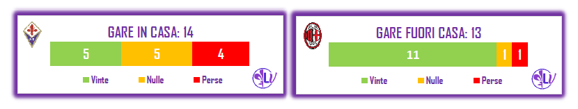 Anche le reti realizzate sono a vantaggio del Milan, 50 contro le 33 della Fiorentina; 31 invece quelli subiti dai rossoneri, 42 quelle dei Viola.