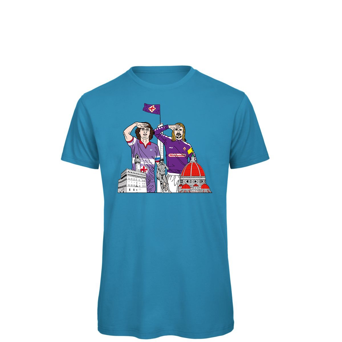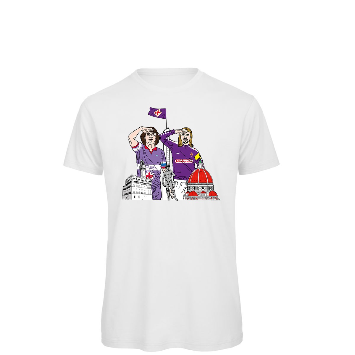 Adesso nasce la maglia dei tifosi della Fiorentina, con le due stelle della storia gigliata Antognoni e Batistuta che fanno il saluto al capitano. Con i simboli più belli di Firenze…