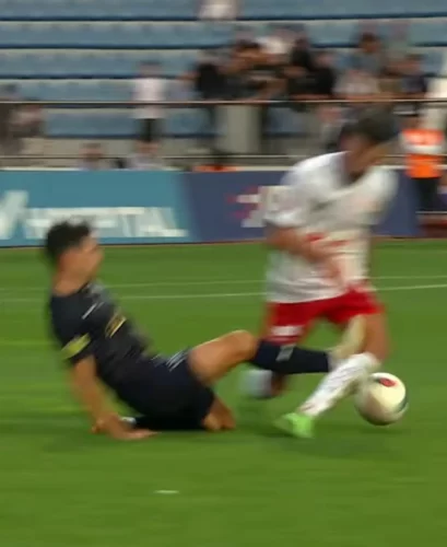 Di seguito il fermo immagine dell’intervento killer a gamba alta: