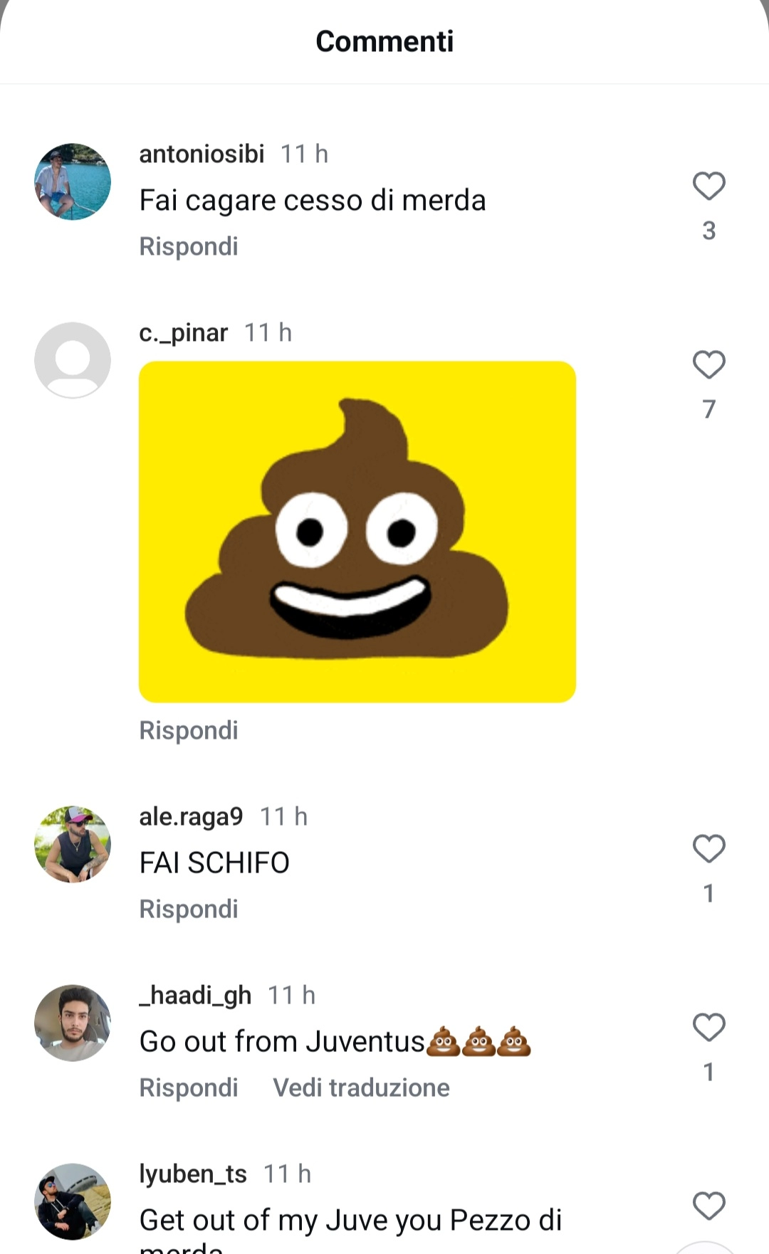 Non è stata digerita dai tifosi della Juventus l’eliminazione in Coppa Italia contro l’Empoli. Nel mirino dei tifosi bianconeri ci è finito Dusan Vlahovic che è stato colpevole anche di aver sbagliato il primo rigore. Sul suo profilo Instagram, dopo la partita, si sono riversati tanti supporters della Juventus che in preda dalla rabbia lo hanno riempito di insulti, offese, frasi razziste e anche augurio di morte. Tra questi qualcuno gli diceva anche di tornare alla Fiorentina. Ecco solo alcuni dei commenti indirizzati a Vlahovic sul suo profilo Instagram: