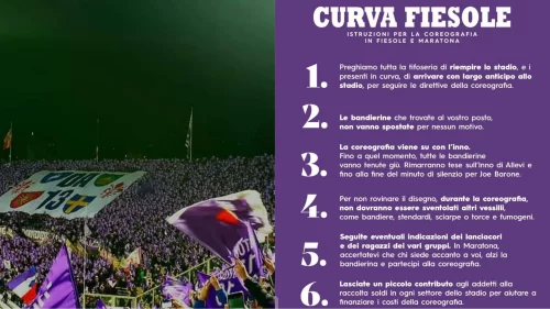 Istruzioni Curva Fiesole per la coreografia in Fiesole e Maratona di domani sera contro il Milan