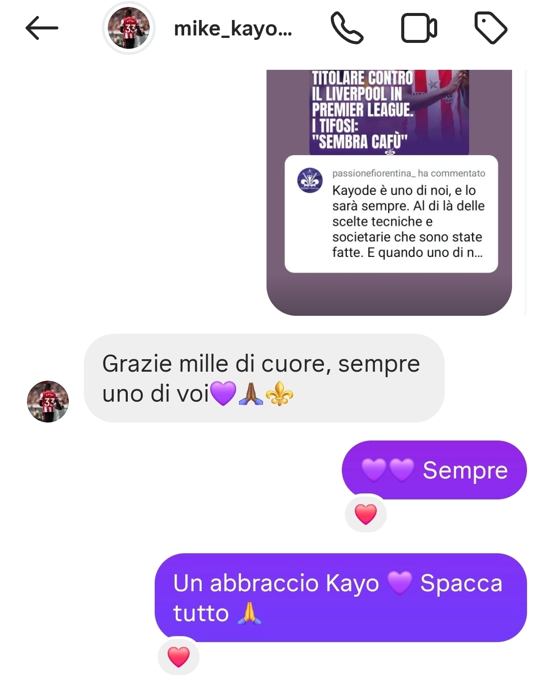 Micheal Kayode non ha dimenticato Firenze e la Fiorentina. Il terzino destro classe 2004, è stato eletto migliore in campo nella gara tra Brentford e Liverpool, terminata 3-2 in favore della squadra di casa. Dopo la partita la pagina social “Passione Fiorentina” gli ha dedicato un post per congratularsi della sua grande partita, l’ex terzino viola, cresciuto nel settore giovanile della Fiorentina, ha mandato un messaggio scrivendo per ringraziare dell’omaggio: “Grazie mille di cuore, sarò sempre uno di voi”. Un’altra conferma, semmai ce ne fosse bisogno, del legame tra il terzino e la Fiorentina.