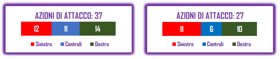Lo sviluppo offensivo della Fiorentina ha prodotto 37 azioni di Attacco, contro le 27 del Cagliari.