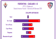 LA PAROLA AI NUMERI: SUPREMAZIA NEI TIRI TOTALI PER LA FIORENTINA, 12 CONTRO I 9 DEL CAGLIARI