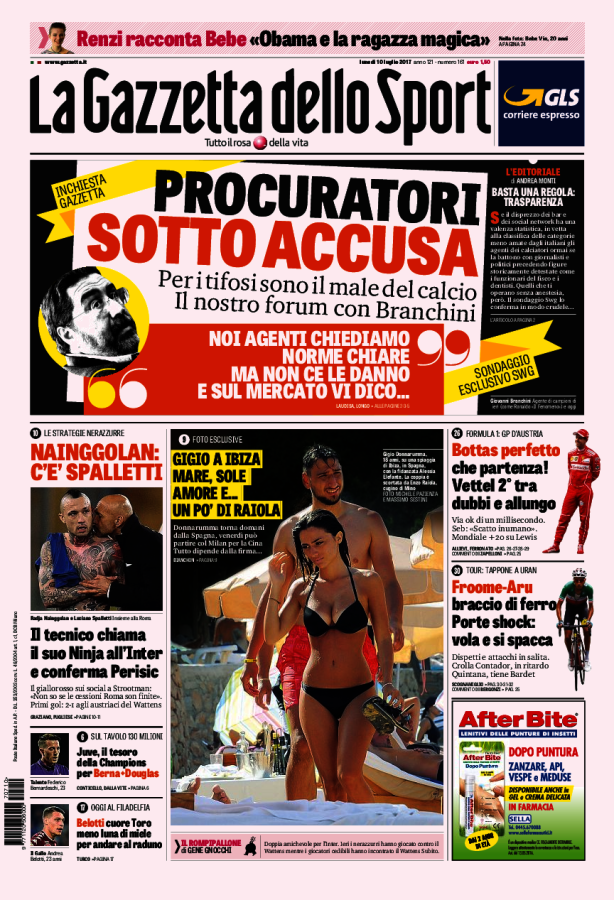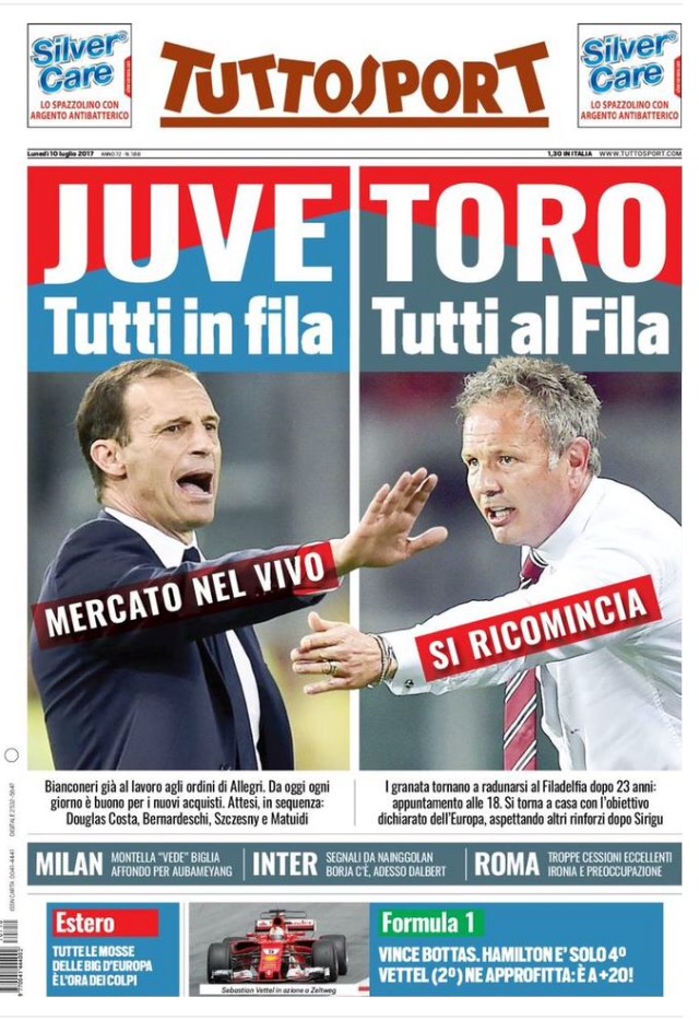 Le prime pagine dei principali quotidiani sportivi – 10 Luglio 2017