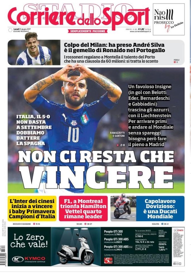 [caption id="attachment_21009" align="alignnone" width="640"] TuttoSport 12 Giugno 2017[/caption] [caption id="attachment_21010" align="alignnone" width="640"] Corriere Dello Sport 12 Giugno 2017[/caption]