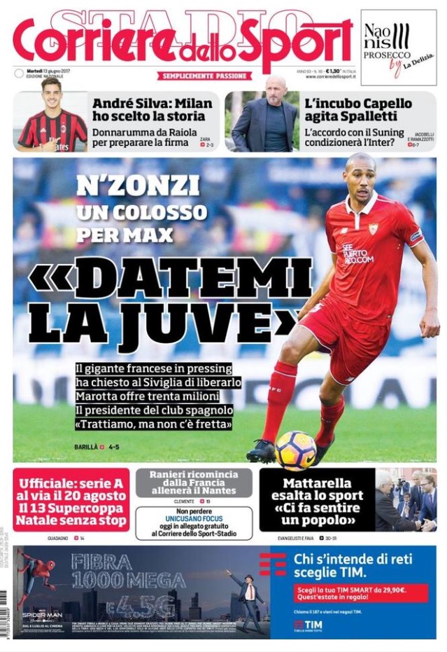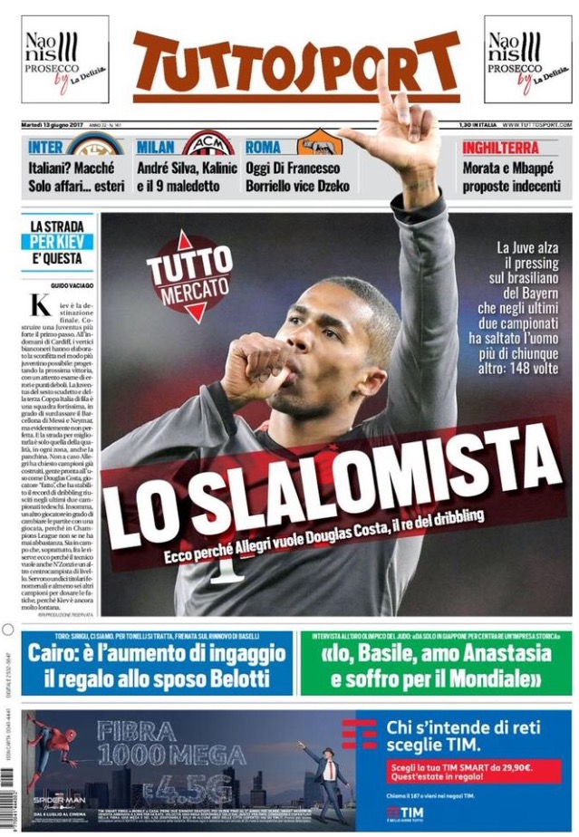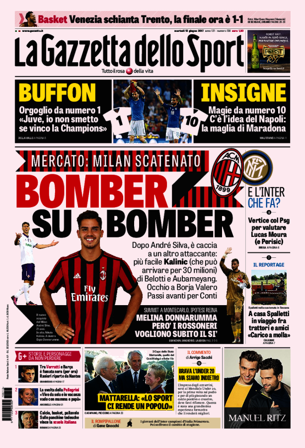 Le prime pagine dei principali quotidiani sportivi – 13 Giugno 2017