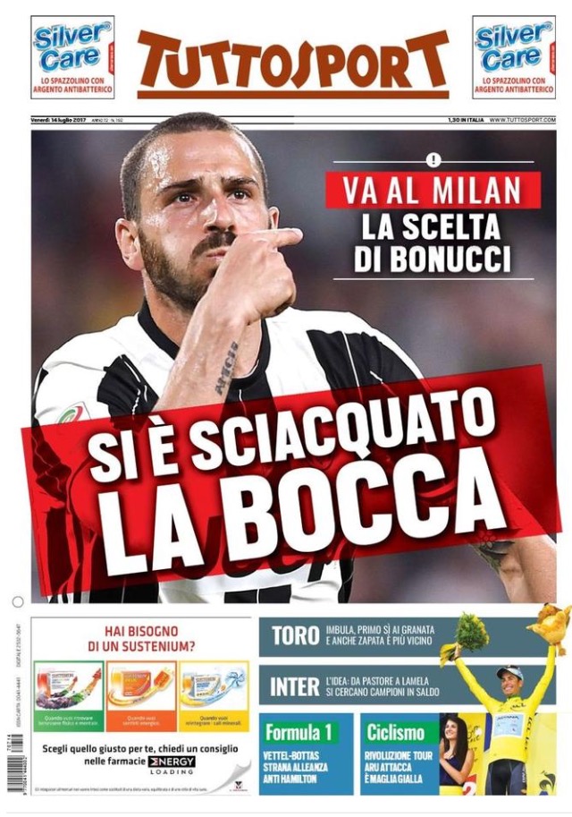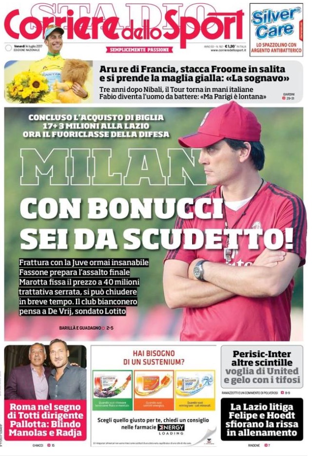 Le prime pagine dei principali quotidiani sportivi – 14 Luglio 2017