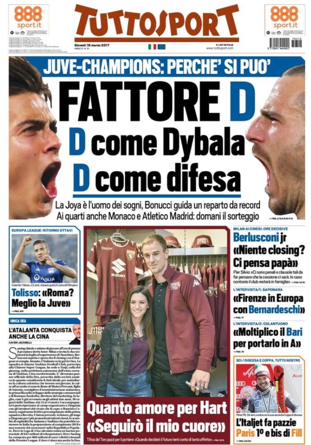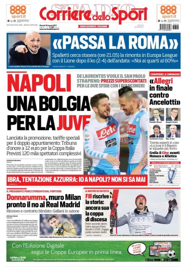 [caption id="attachment_15630" align="alignnone" width="640"] TuttoSport 16 Marzo 2017[/caption] [caption id="attachment_15631" align="alignnone" width="640"] Corriere Dello Sport 16 Marzo 2017[/caption]