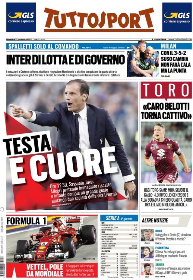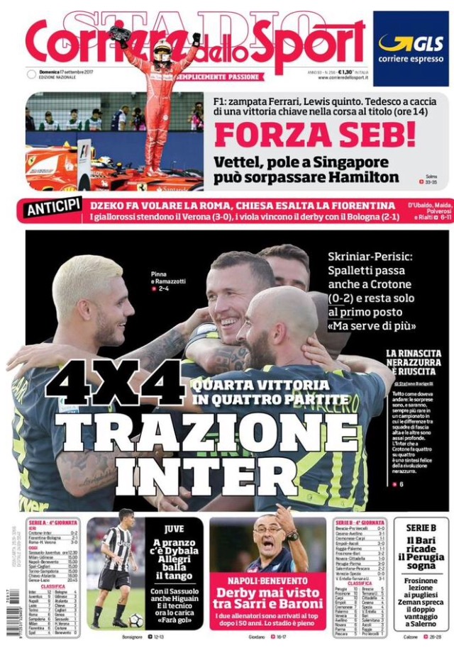 [caption id="attachment_29057" align="alignnone" width="640"] Corriere Dello Sport 17 Settembre 2017[/caption] [caption id="attachment_29058" align="alignnone" width="640"] TuttoSport 17 Settembre 2017[/caption] [caption id="attachment_25119" align="alignnone" width="300"] Sponsor Autoè[/caption]