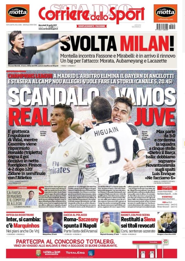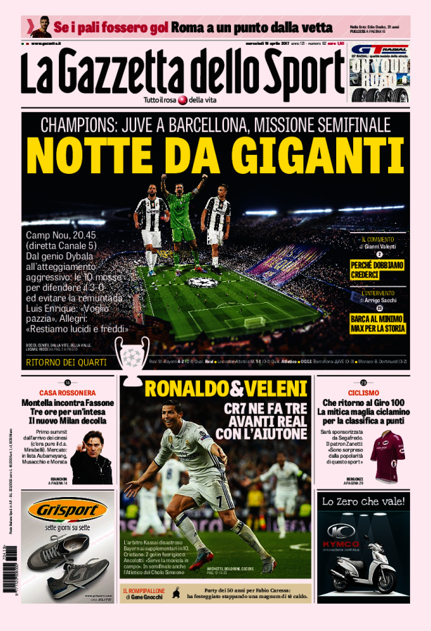 Le prime pagine dei principali quotidiani sportivi – 19 Aprile 2017