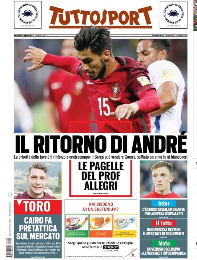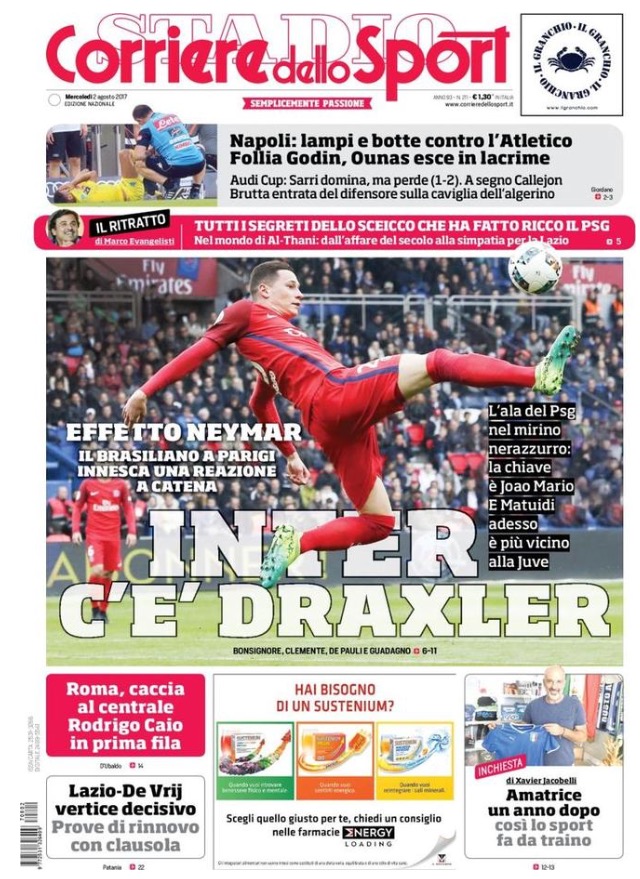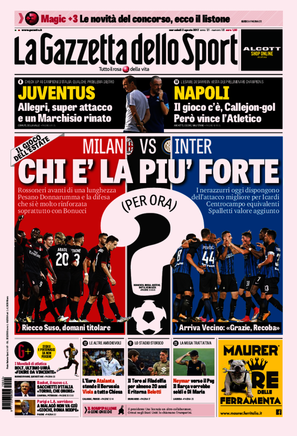 Le prime pagine dei principali quotidiani sportivi – 2 Agosto 2017