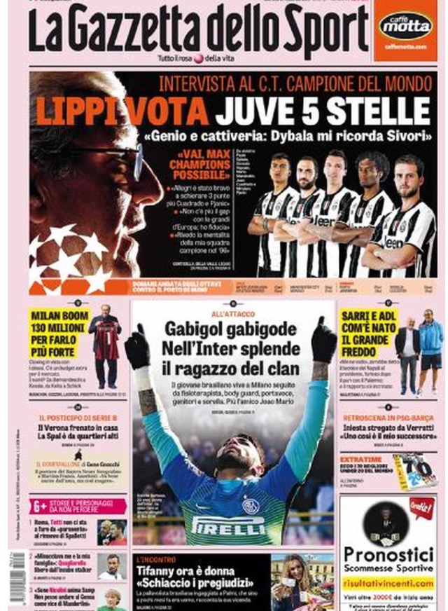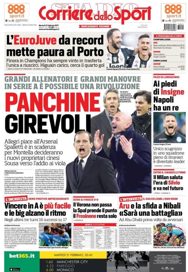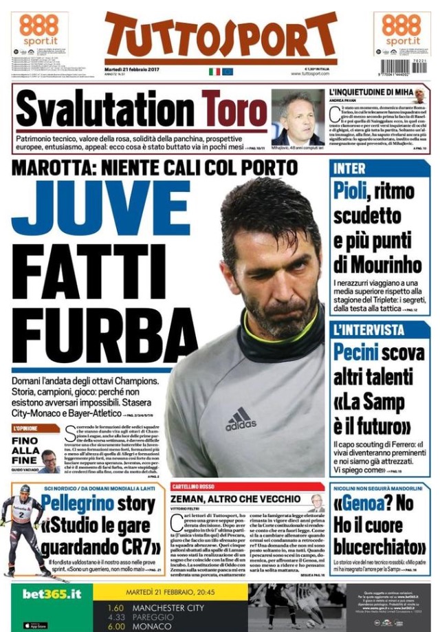 [caption id="attachment_14662" align="alignnone" width="640"] TuttoSport 21 Febbraio 2017[/caption] [caption id="attachment_14661" align="alignnone" width="640"] Corriere Dello Sport 21 Febbraio 2017[/caption] [caption id="attachment_14660" align="alignnone" width="640"] Gazzetta Dello Sport 21 Febbraio 2017[/caption]