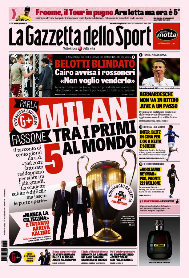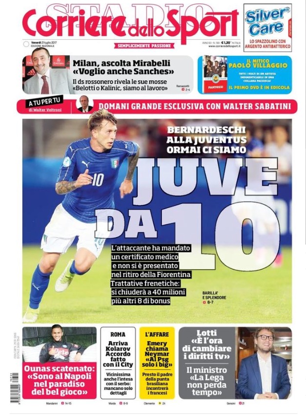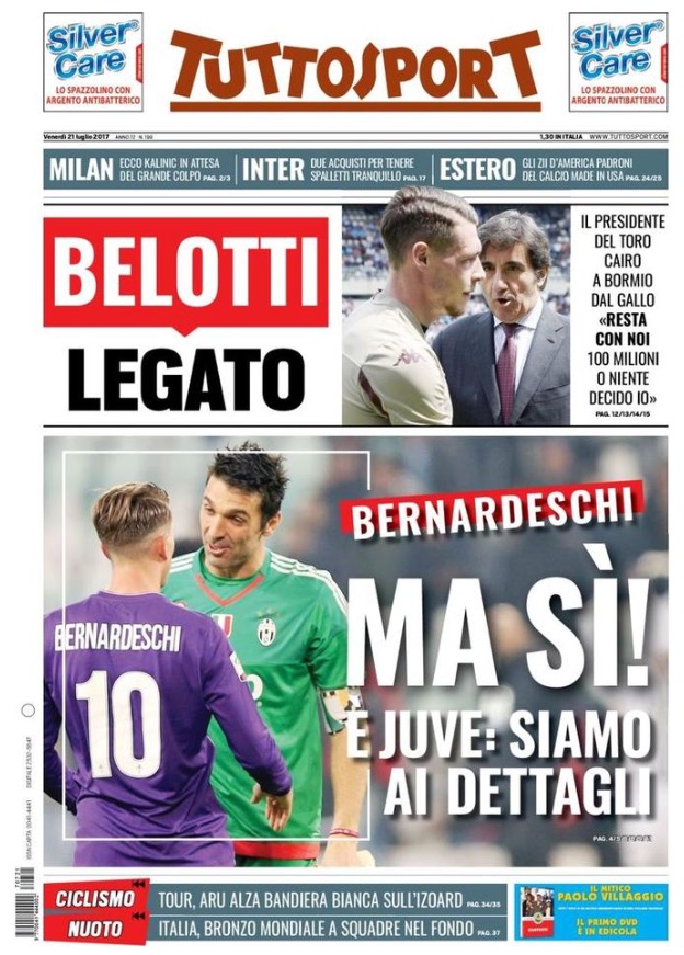 [caption id="attachment_24347" align="alignnone" width="624"] TuttoSport 21 Luglio 2017[/caption] [caption id="attachment_24346" align="alignnone" width="627"] Corriere Dello Sport 21 Luglio 2017[/caption] [caption id="attachment_24345" align="alignnone" width="614"] Gazzetta Dello Sport 21 Luglio 2017[/caption]