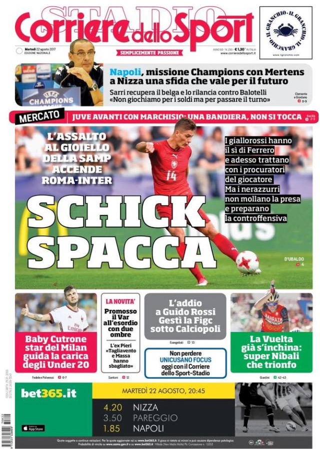[caption id="attachment_27022" align="alignnone" width="640"] TuttoSport 22 Agosto 2017[/caption] [caption id="attachment_27023" align="alignnone" width="640"] Corriere Dello Sport 22 Agosto 2017[/caption] [caption id="attachment_25119" align="alignnone" width="300"] Sponsor Autoè[/caption]
