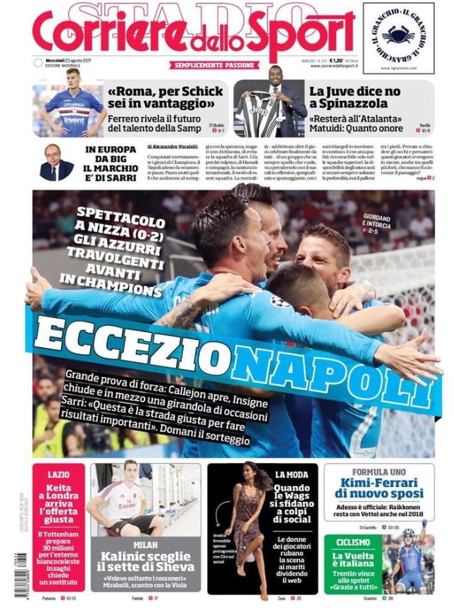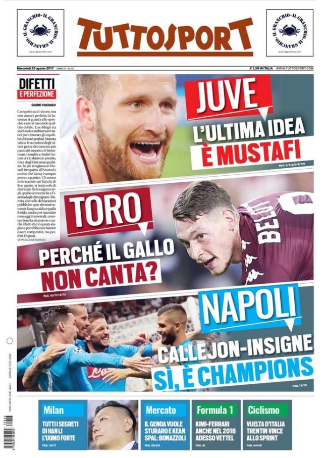[caption id="attachment_27097" align="alignnone" width="640"] TuttoSport 23 Agosto 2017[/caption] [caption id="attachment_27098" align="alignnone" width="640"] Corriere Dello Sport 23 Agosto 2017[/caption] [caption id="attachment_25119" align="alignnone" width="300"] Sponsor Autoè[/caption]