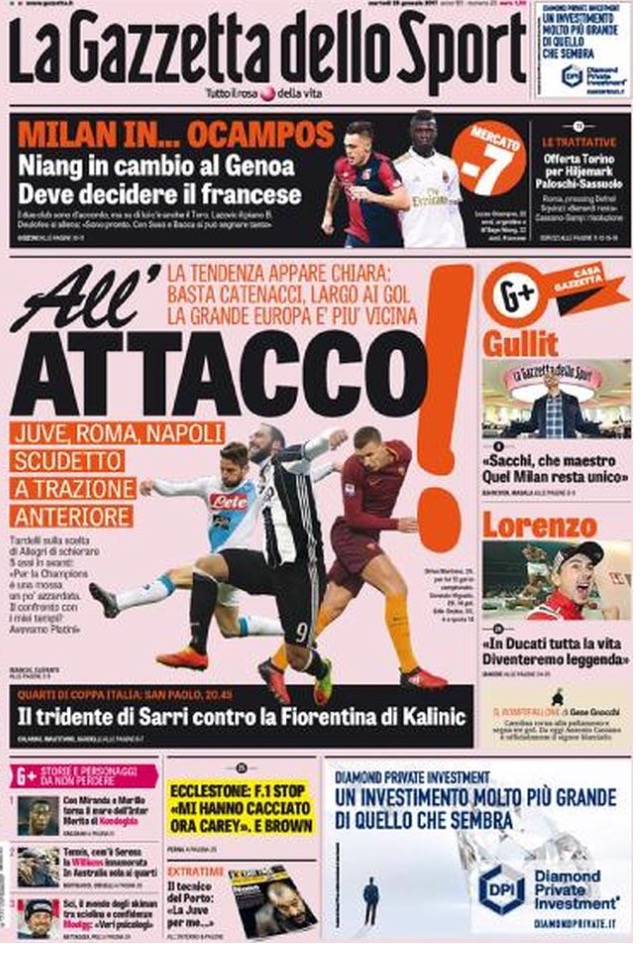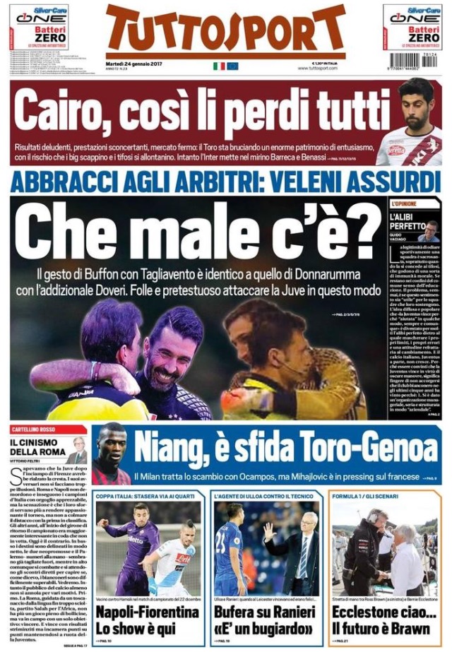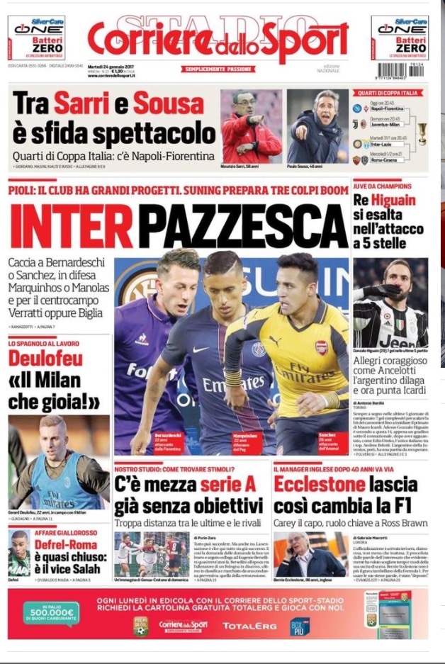Le prime pagine dei principali quotidiani sportivi – 24 Gennaio 2017