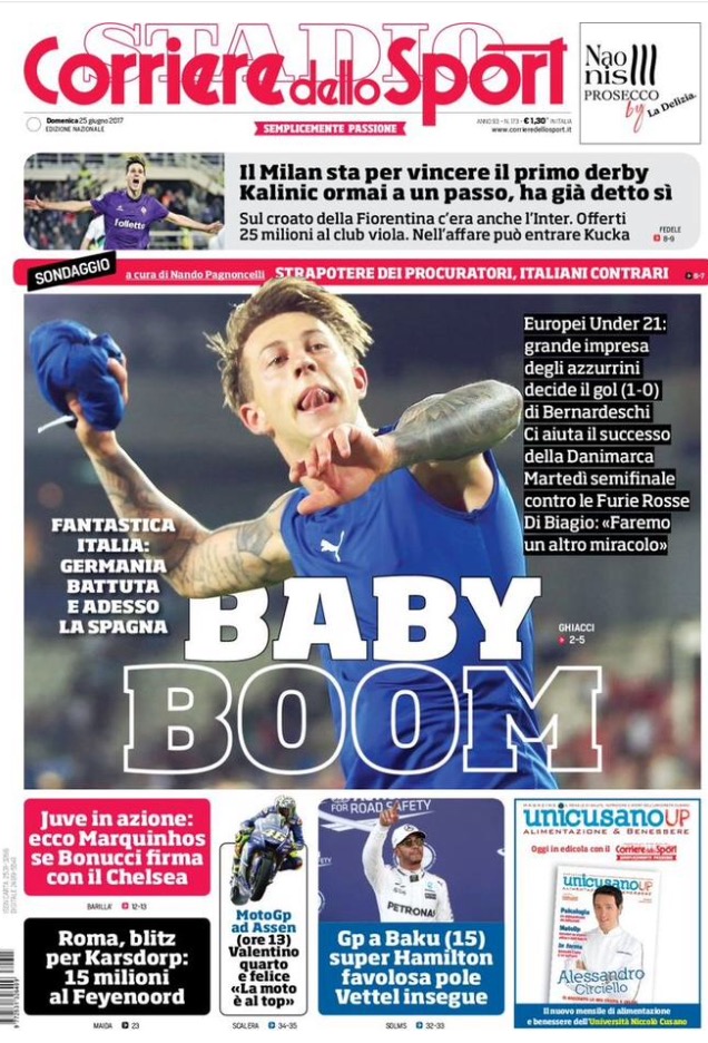 [caption id="attachment_22176" align="alignnone" width="632"] TuttoSport 25 Giugno 2017[/caption] [caption id="attachment_22177" align="alignnone" width="636"] Corriere Dello Sport 25 Giugno 2017[/caption]