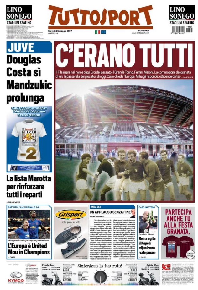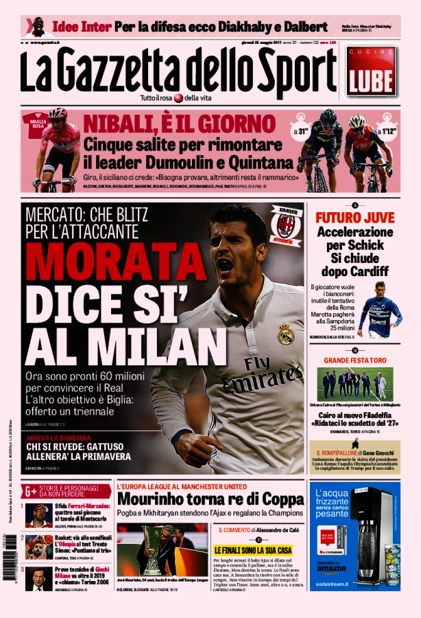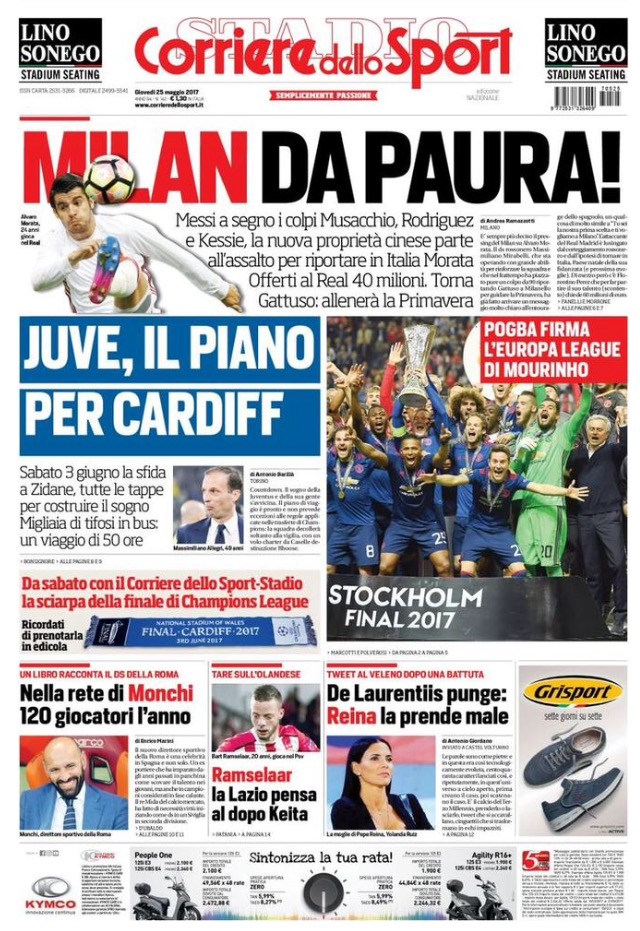 Le prime pagine dei principali quotidiani sportivi – 25 Maggio 2017