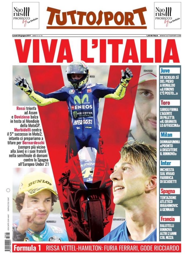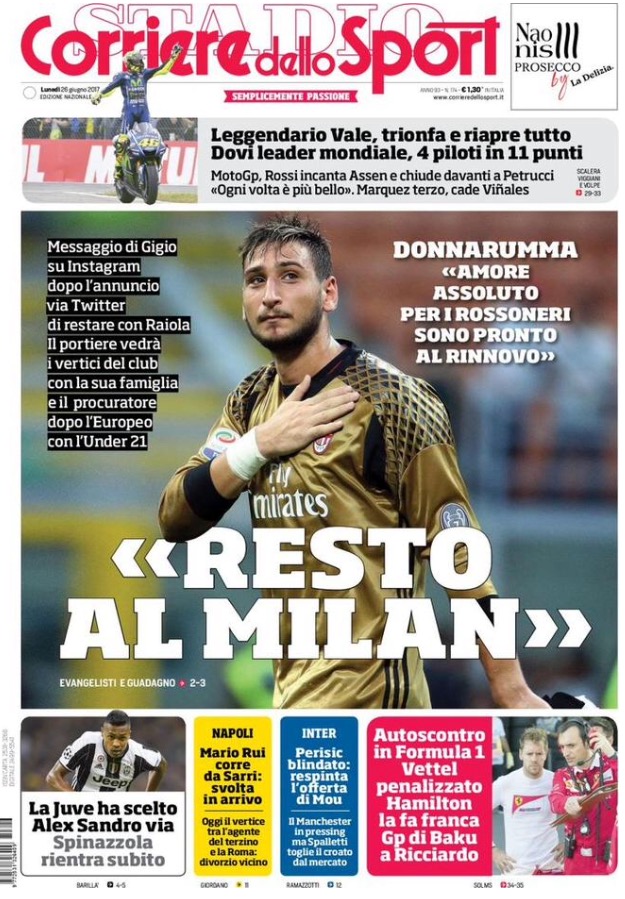 Le prime pagine dei principali quotidiani sportivi – 26 Giugno 2017